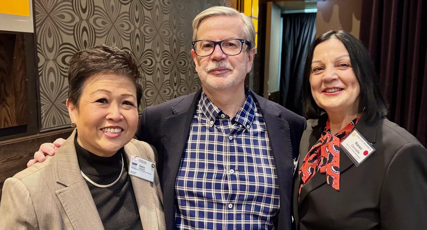 President Catherine then invited new member candidates, Jane de Git, Ailesh Dupate and Karen Gornalle to join her on the podium accompanied by their sponsors, Benie McIntosh, Deb Yin Foo and herself, and proceeded to deliver the induction charge. She then welcomed all three as members and invited each to say a few words in response.