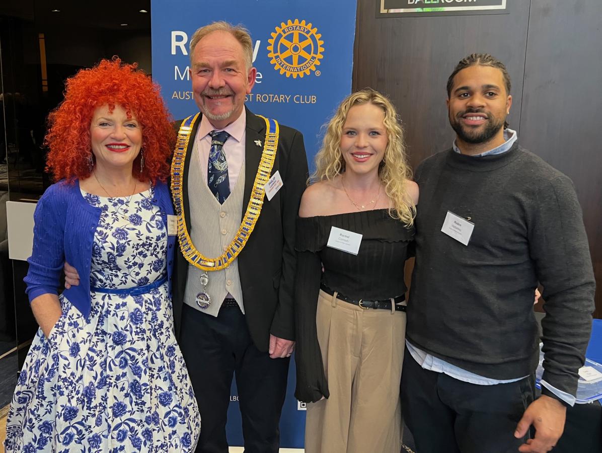 Following the meal service break, President Catherine welcomed all to our final meeting of this Rotary year our 5083rd meeting since founded in April 1922. Catherine welcomed special guests including incoming District Governor Elect Peter Shepheard (Altona); recipients of the 2025 Arts Scholarship, Tilly Jones (Saxophone) whose performance launched the meeting, the other two Scholarship recipients including Orvokki Britton (Opera Singer); and for induction into the Club at this meeting, Catherine’s wife Jane de Git accompanied by Margaret Kerr, Ailesh Dupate and Karen Gornalle accompanied by her husband Michael and, President Elect Philip Cornish with his wife Debbie Sonin, Daughter Rachel and her partner Robin Victorino. The full list of all visitors and guests is featured under this article.