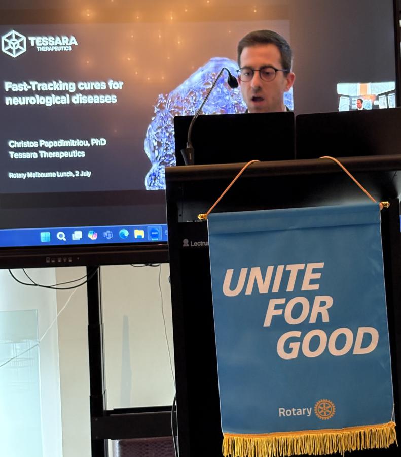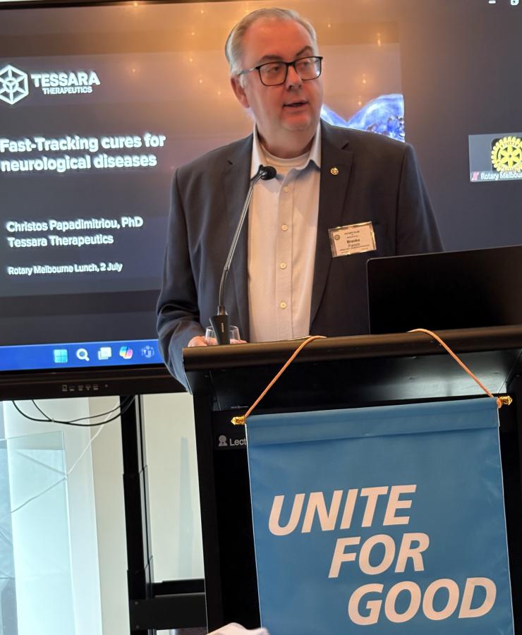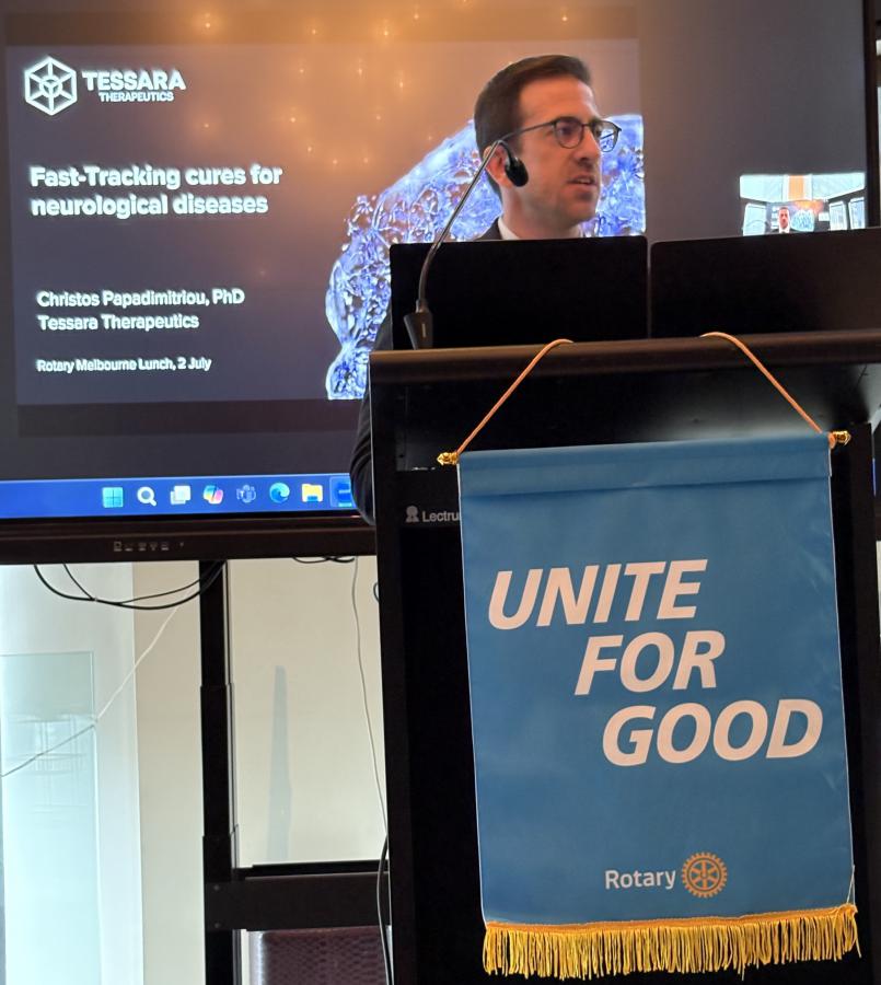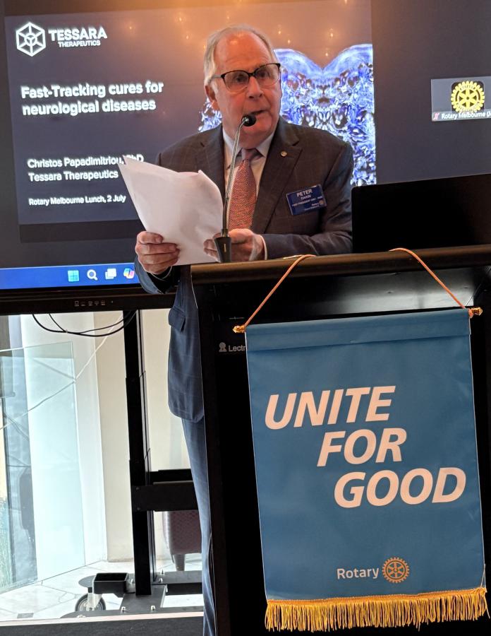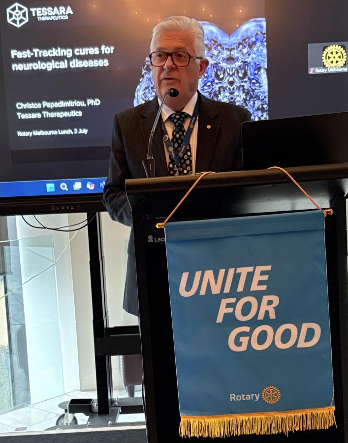 After reminding members and guests to book early for the NGV Winter Masterpieces Event on the evening of Friday 1stAugust, 25 and drawing the raffle, he invited Chair of the Day, Dimitrios Salampasis to the podium to introduce Dr Christos Papadimitriou, Managing Director and CEO of Tessara to address the club.