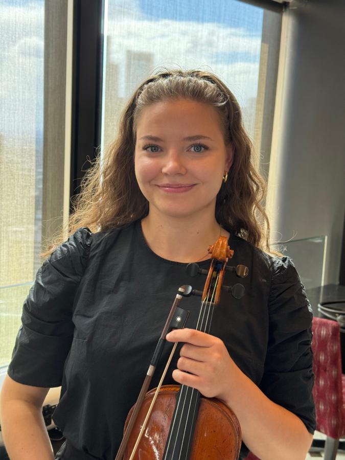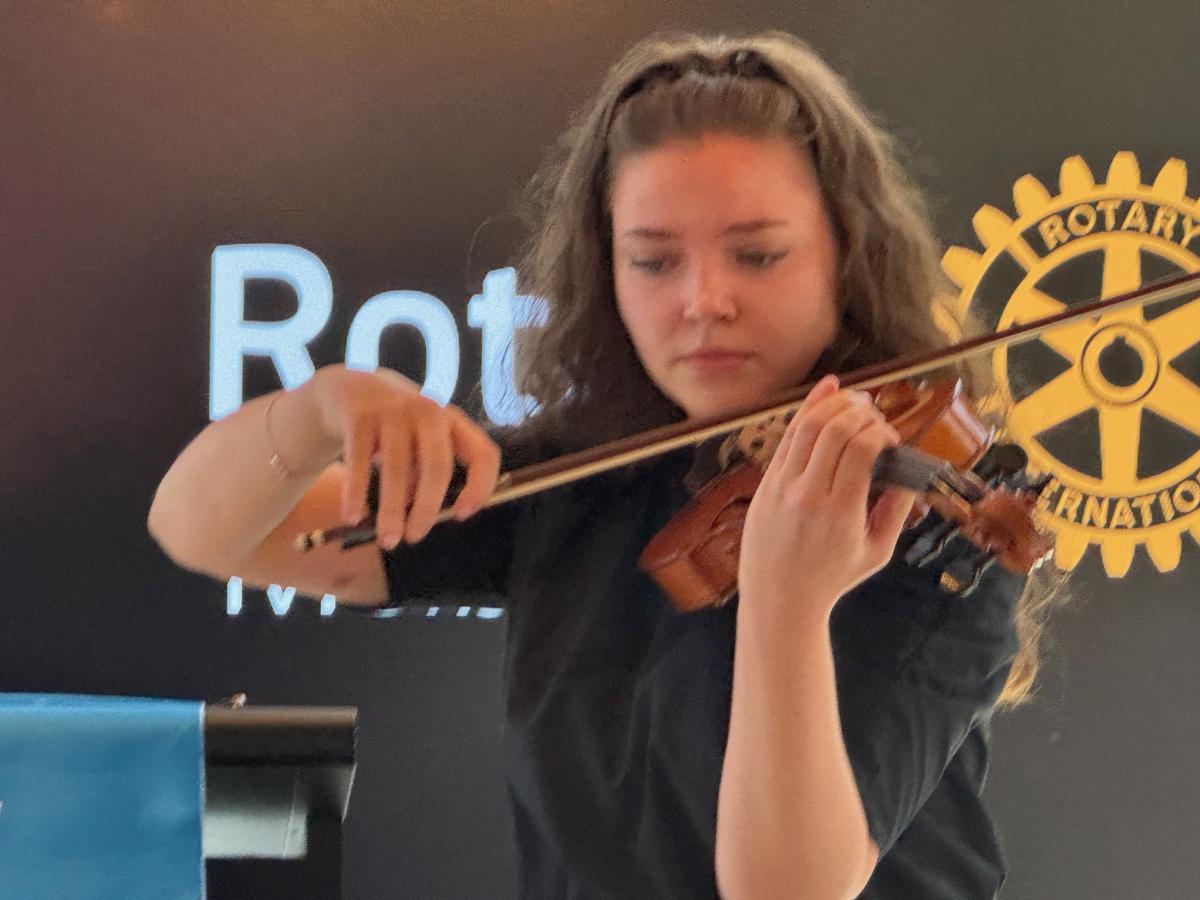 Immediately following the meal service break, Richard Dent returned to the podium and invited David Kram to tell the meeting about the New Generations Service Exchange (NGSE) in which a joint initiative of Rotary Melbourne and Rotary Central Melbourne annually focus on short term exchanges enabling young musicians to study in Germany and Australia. Warwick Cavell from Rotary Central Melbourne explained his club’s commitment and a recent participant, Isabell Horn spoke of her experience in Melbourne and performed a brief violin recital.