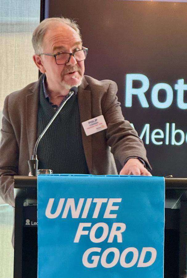 Philip then welcomed Robert McGuirk to the podium to introduce Past District 9800 Governor, Murray Verso to speak on Building Peace Through Rotary.
