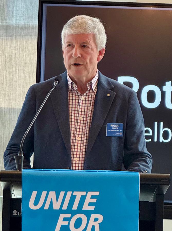 Rotary District 9800, has been especially successful in identifying and supporting peace fellows, producing more than 40 candidates — more than any district globally. He credited pioneers such as Bob Fels, Dennis Shaw, and others for building a strong mentoring and support structure and highlighted the R M Fels Peace Award as recognition of outstanding local contributions to peace.