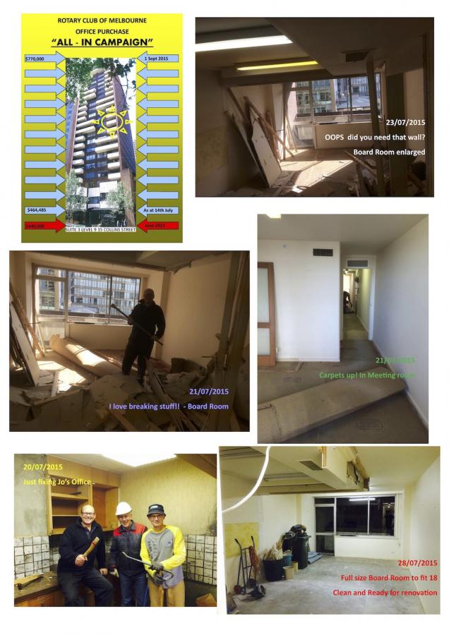 This month marks a decade since we settled on the new office at 15 Collins Street. This occurred on 8thSeptember 2015. Ten club member volunteers had been working around the clock on demolition enabling the renovations under the watchful eye of Barbara Yerondais the club architect.