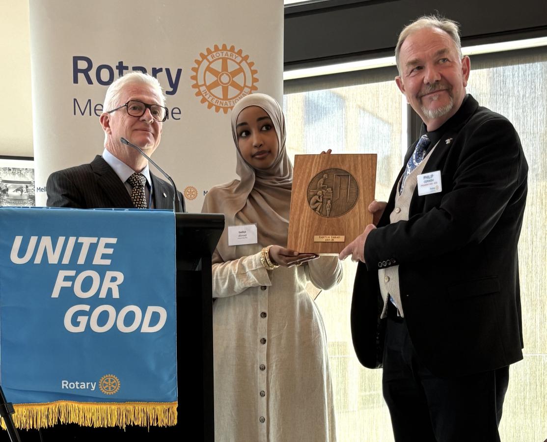 Through this award, Rotary Melbourne gains the opportunity to support the East African Women’s Foundation and to Unite For Good. You can view the Citation in the separate article on the Sir Johnn Reid Community Service Award in this bulletin.