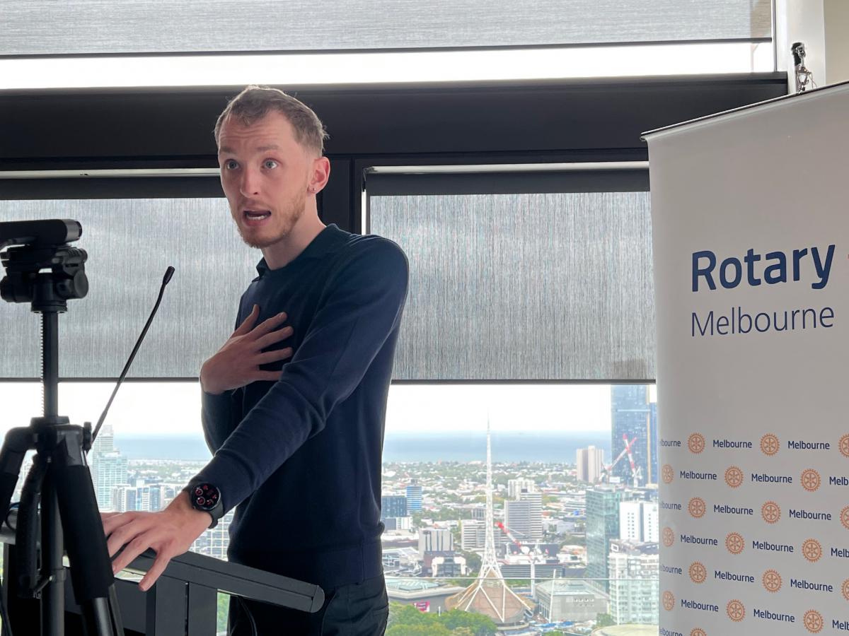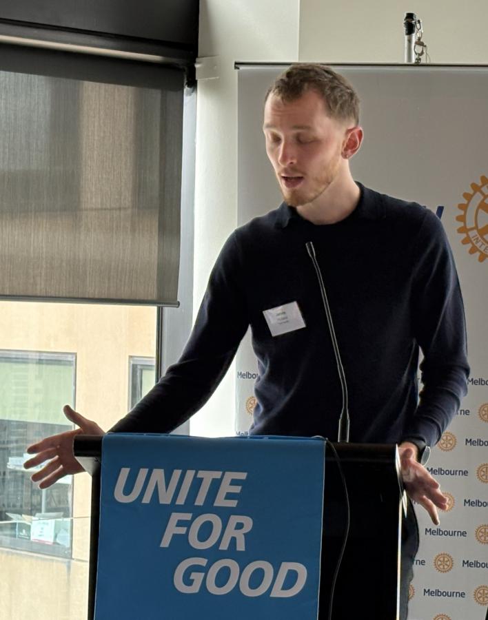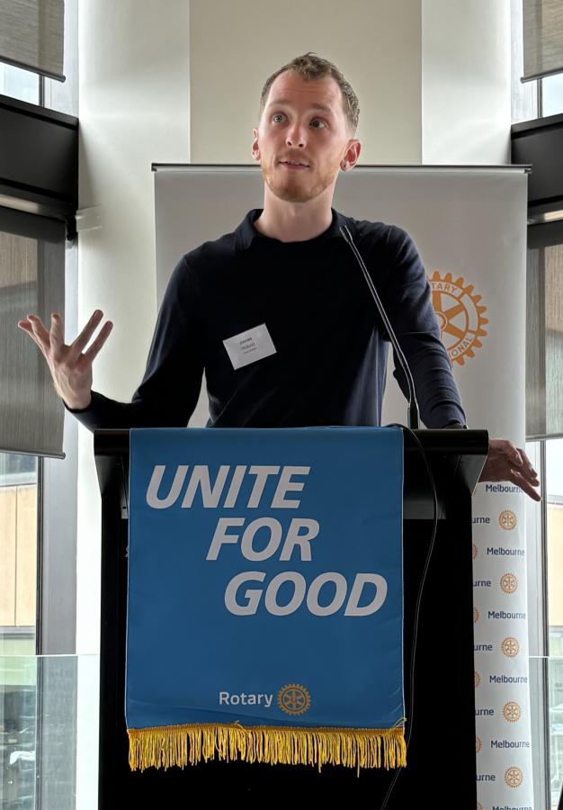 President Philip invited James Holland to the podium to explain the impact the Award has had on his life and career. James Holland returned to Rotary Melbourne five years after receiving the 2021 Young Achievers Award to reflect on its impact and share insights from his work in the HIV sector.