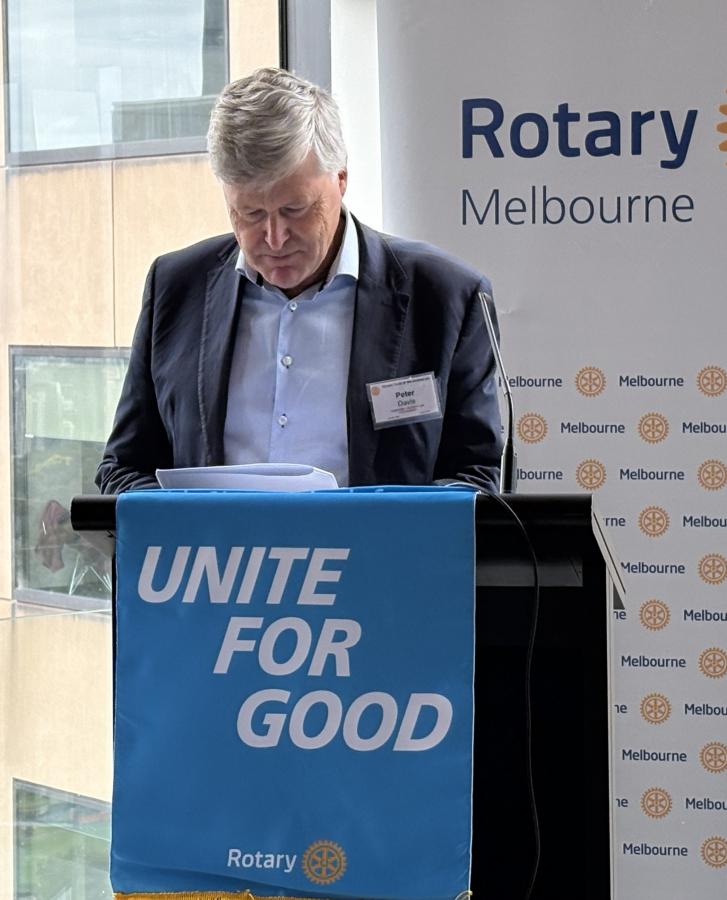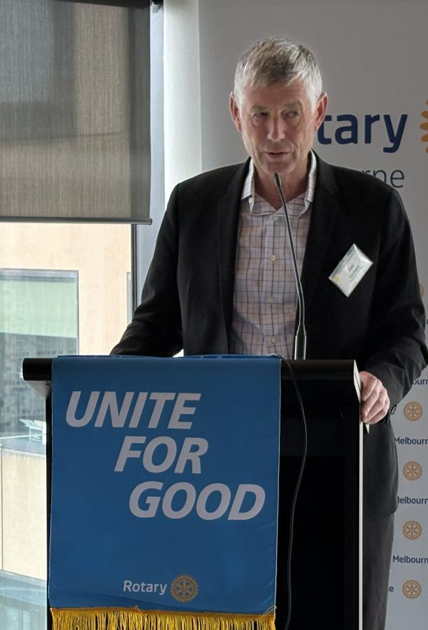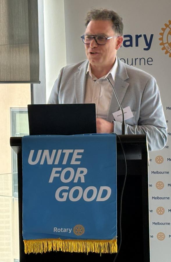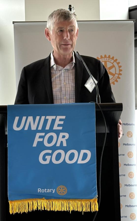 Before introducing Alberto, Jim Orchard introduced two volunteering opportunities: 1) Rotary Melbourne is committing to provide between 5 and 10 volunteers at RIMERN on the first Monday of each month. Contact Branko Panich or John Peberdy if you’re interested, and 2) a “one-off” volunteering day at the Donations in Kind warehouse in a half-day session packing footwear for shipping to Timor Lesté to be held on 5 March. Contact Jim Orchard or Bob Glindemann if interested.