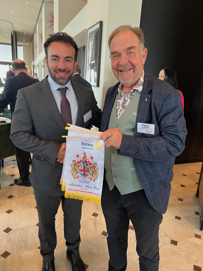Philip made special mention of Guest Speaker, our own Alberto Balbo, and James Holland, 2021 Young Achievers Awardee, accompanied by other awardees, Billy Chen and Joseph Alkarra. These Young Achiever Awardees were hosted by the Vocational Service Committee.