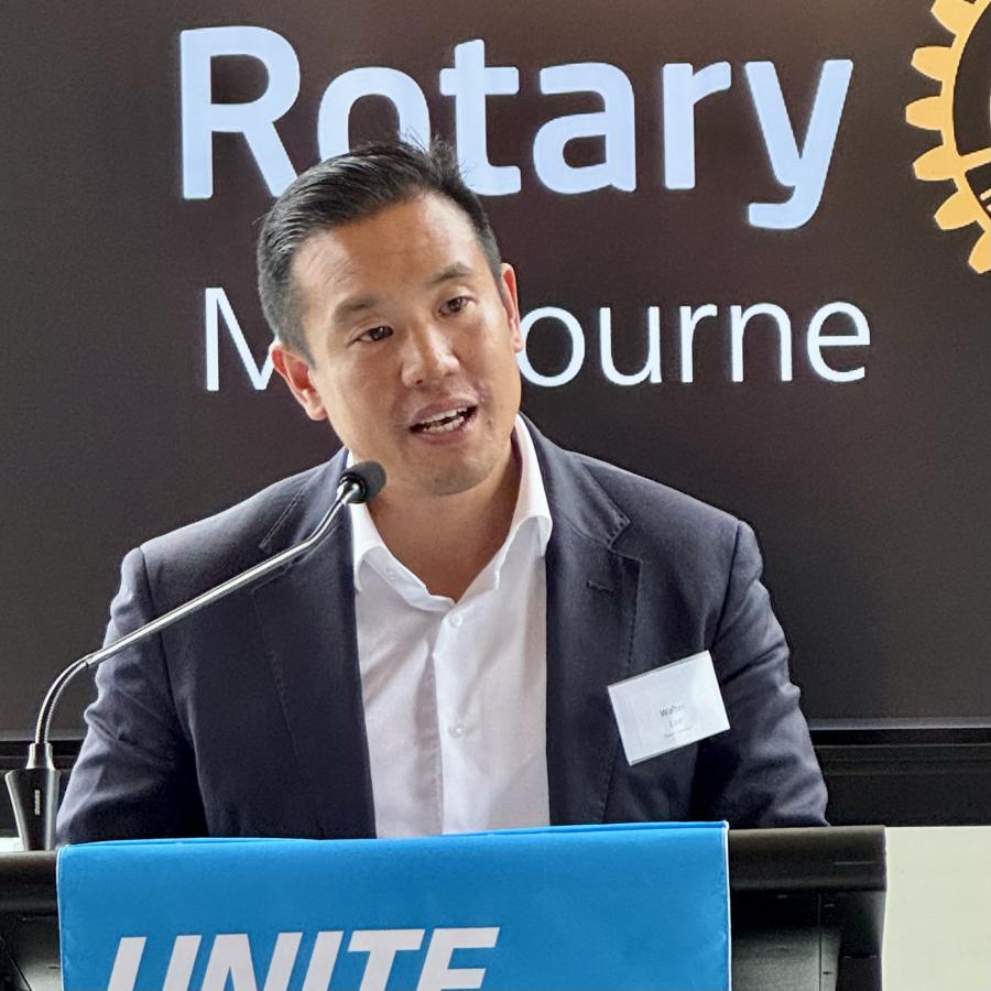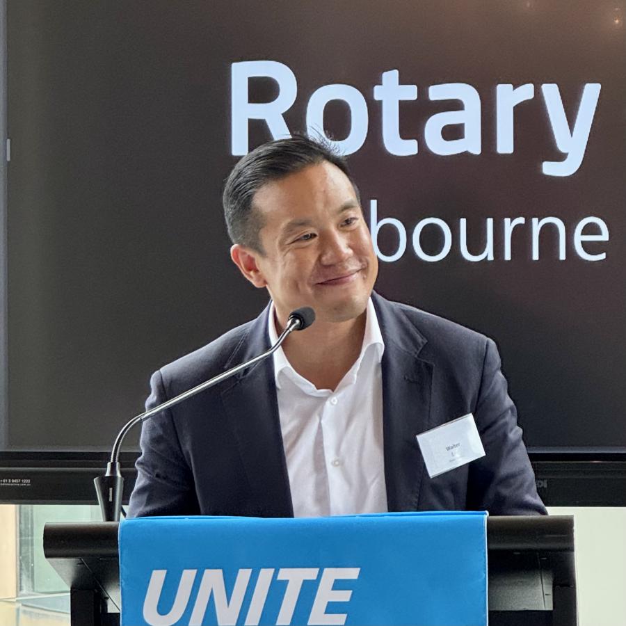 After welcoming visitors and guests, and making our Guest Speaker, Walter Lee, AFL Executive General Manager Strategy, Data & Analytics, and Investments to speak on Playing the long game, to be fully introduced later in the meeting by VP Branko Panich.
