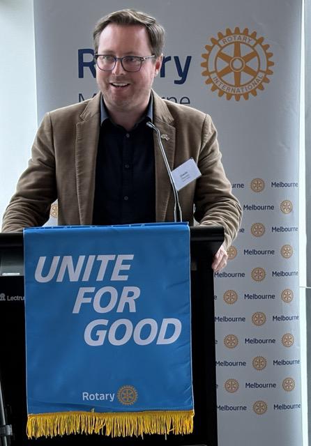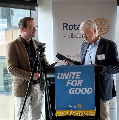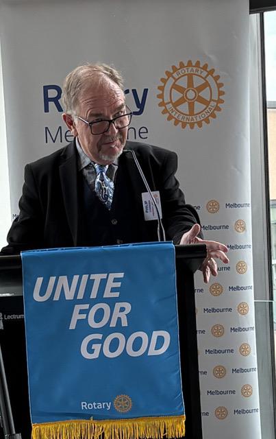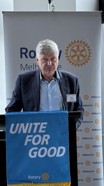 President Philip especially welcomed Guest speaker, Charlie Thomas, CEO of the Victorian Farmers’ Federation, and Club Guest Catherine Freeman to be inducted as a Rotary Melbourne member at this meeting. Full details of all visitors and guest are included later in this bulletin.