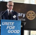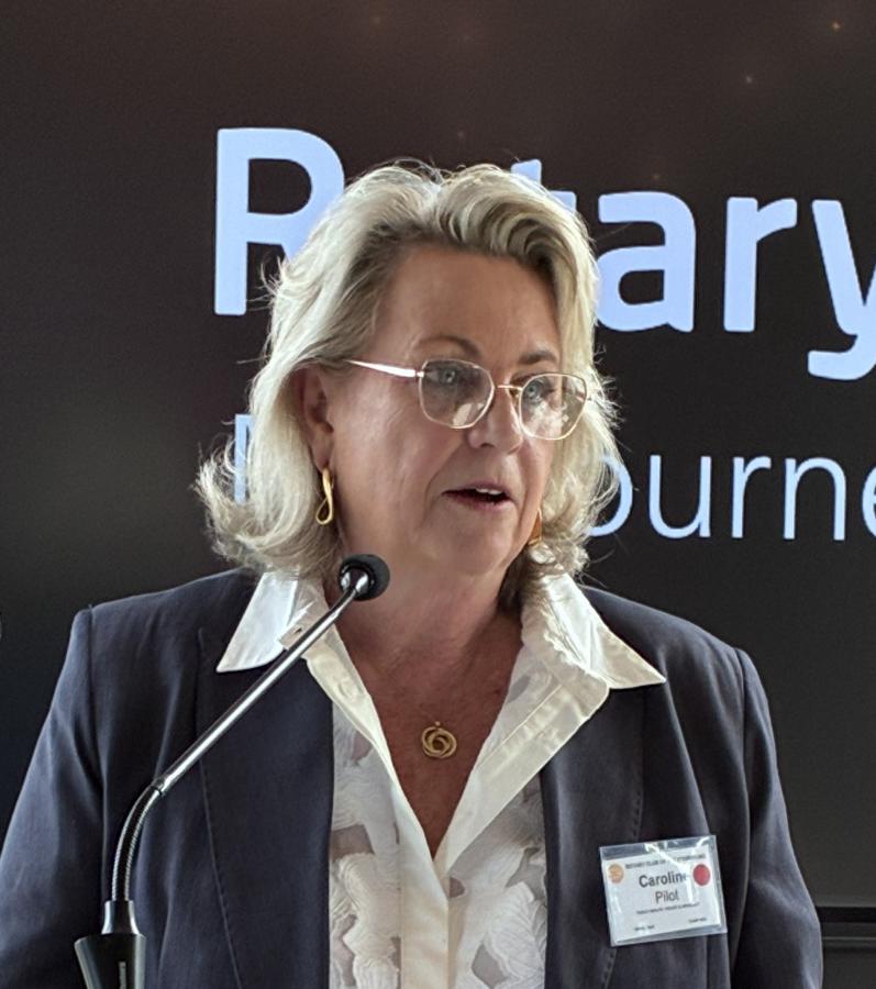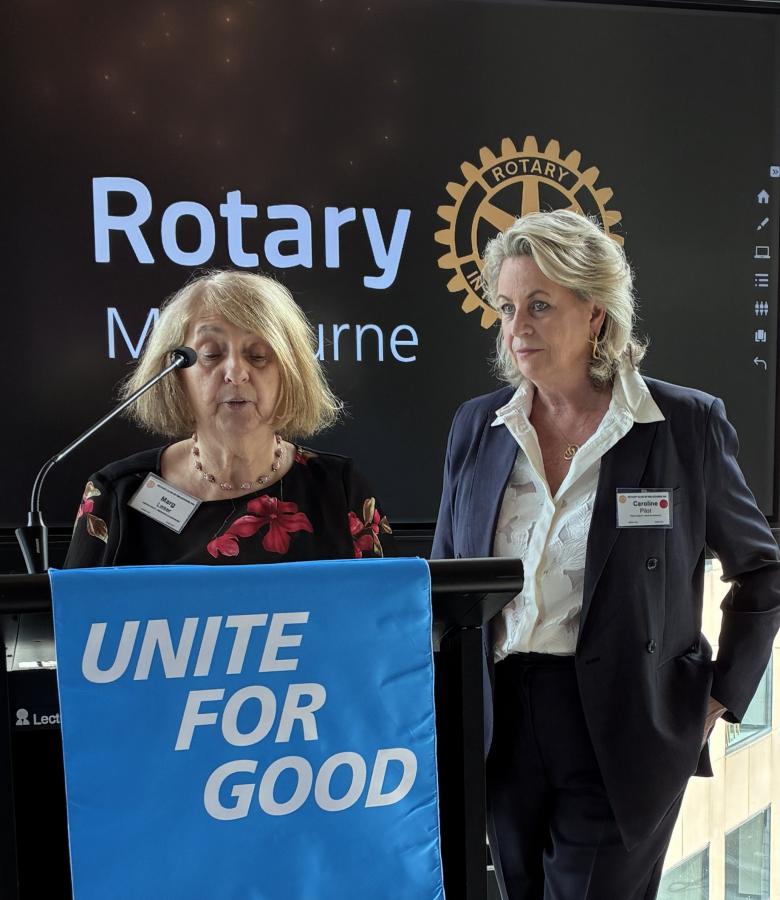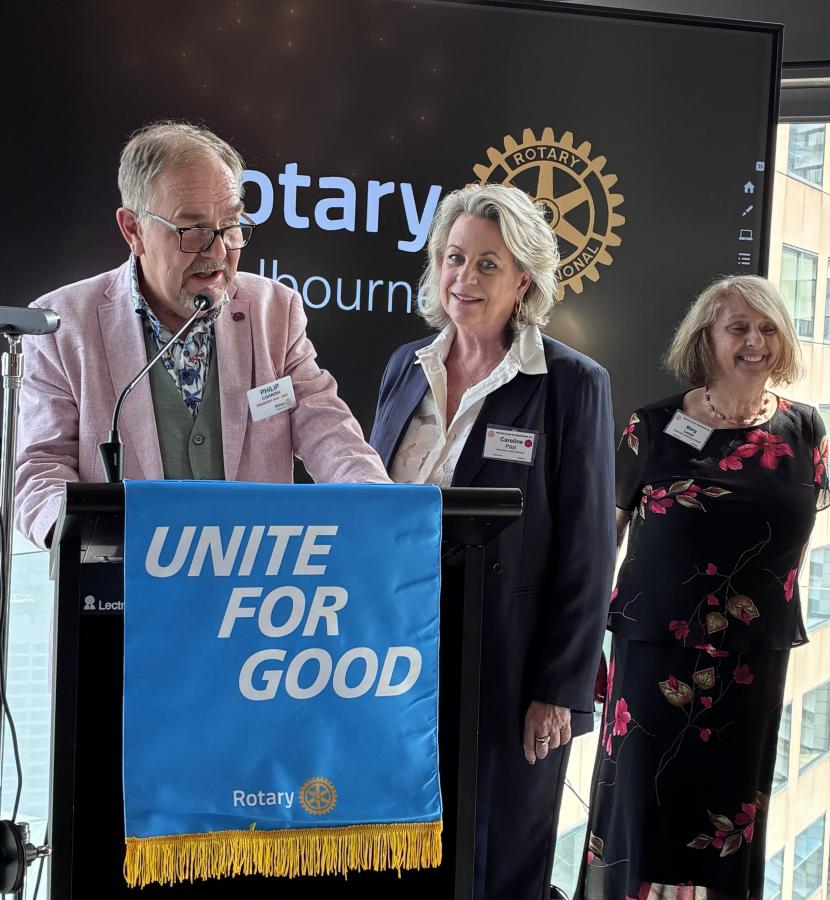 He then called to the Podium, Marg Leser, to introduce Caroline Pilot. to be inducted as a Rotary Melbourne member. After the formalities of induction, Caroline delivered a brief address revealing her commitment to Rotary’s principles of Service Above Self.