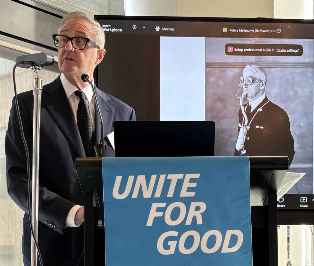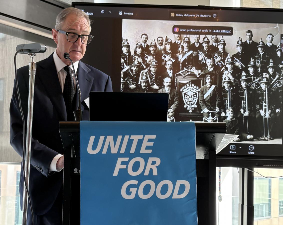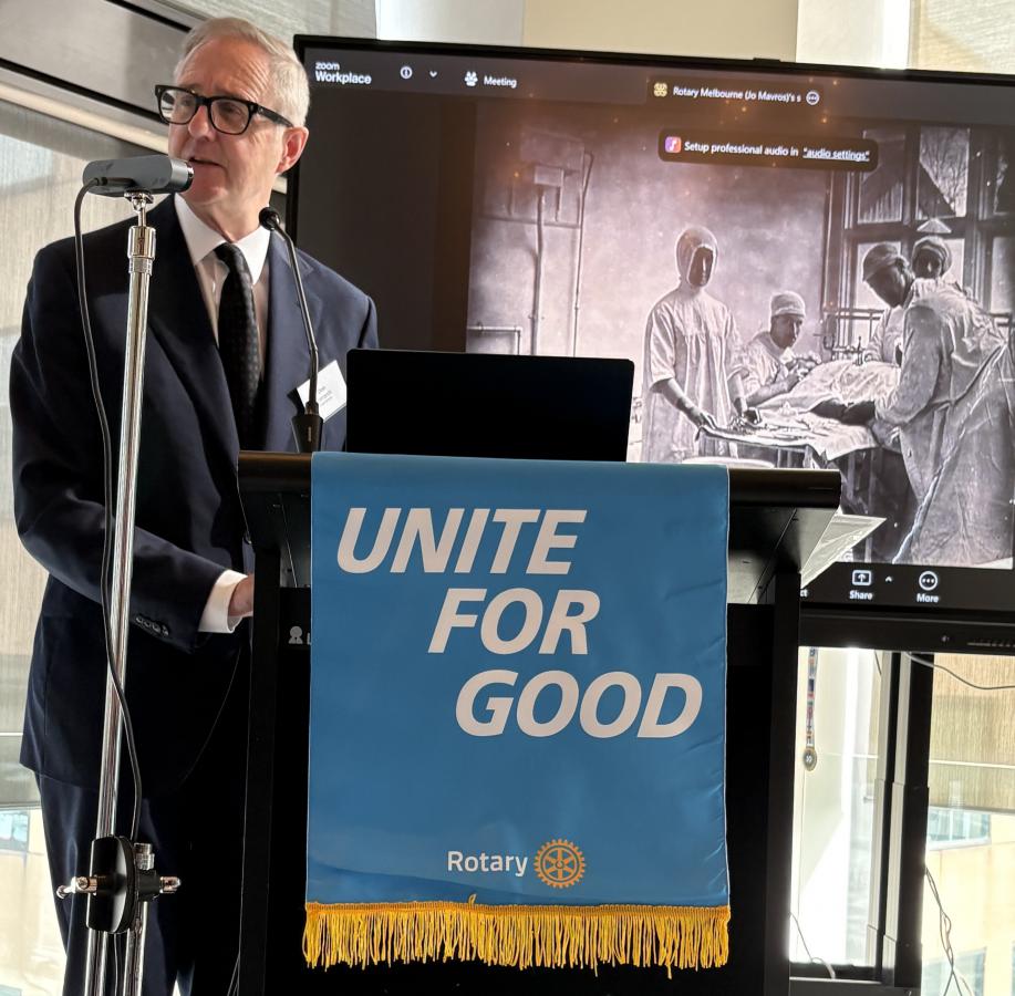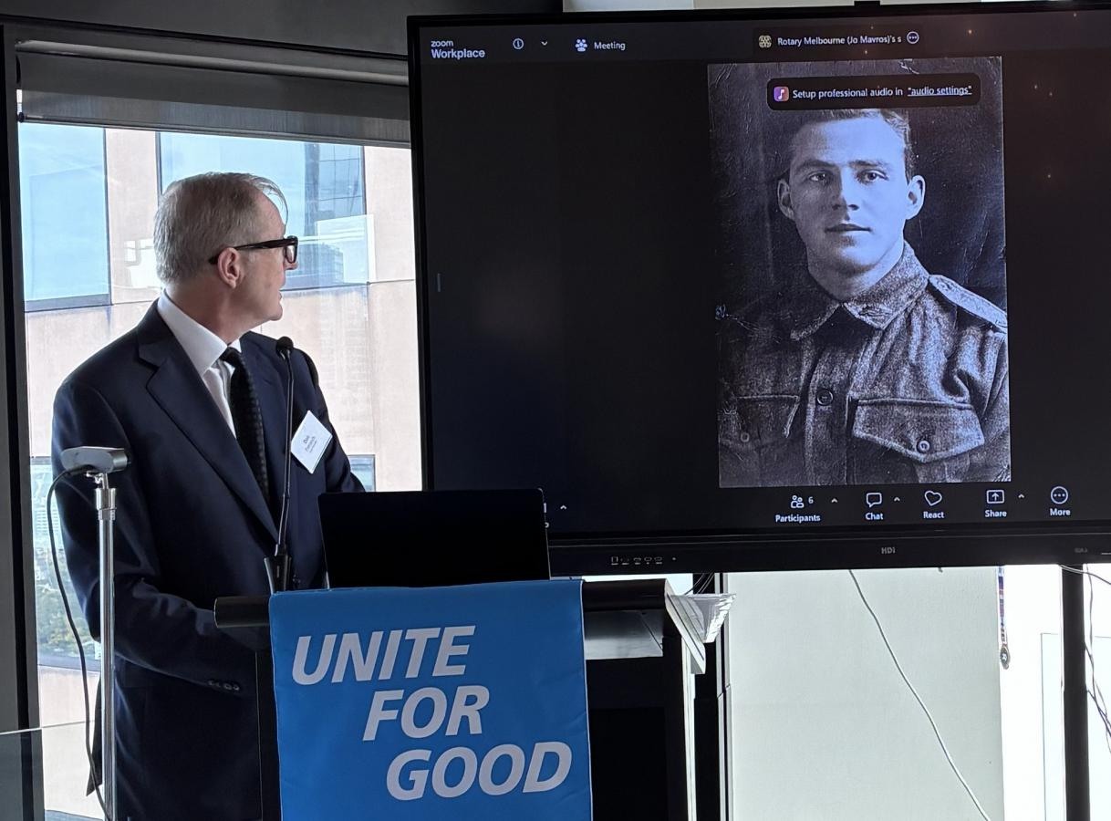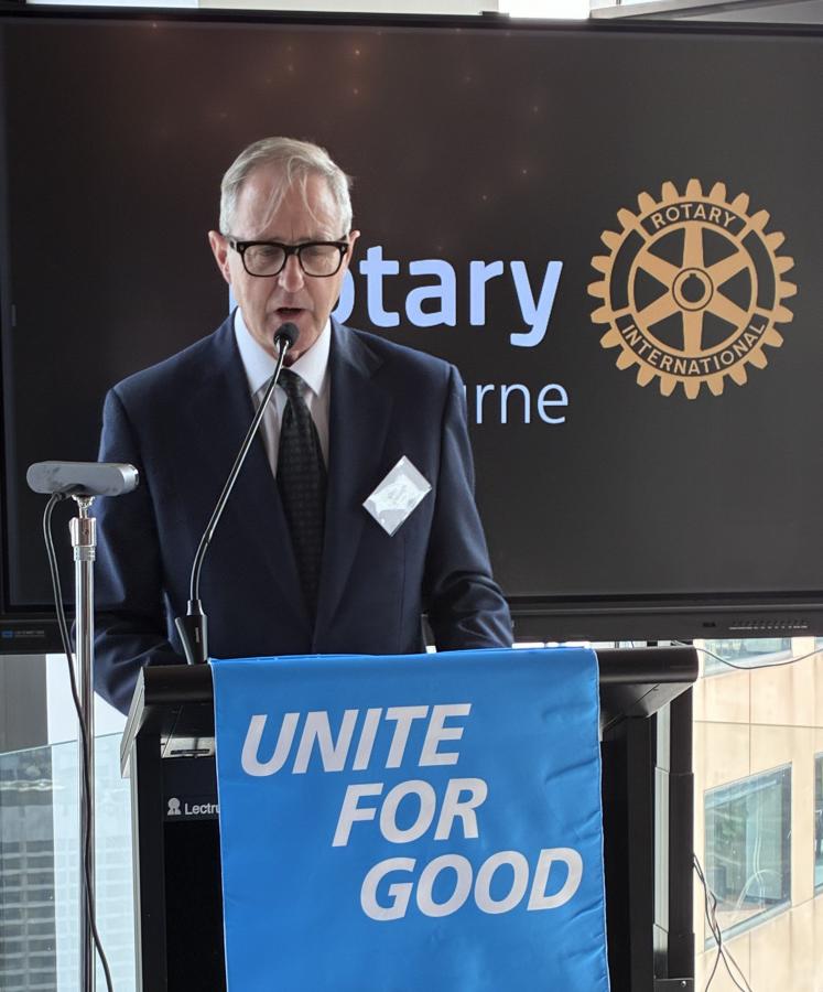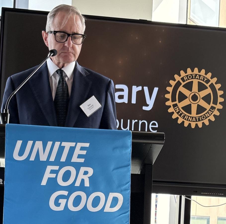 President Philip Cornish welcomed Members, visitors and guests to the 38th Meeting of Rotary Melbourne for 2025-26 on Wednesday 22 April 2026. In particular, he welcomed Caroline Pilot, to be inducted as a Member at this meeting, and Guest Speaker Don Farrands KC, to speak on the topic Life on the Western Front – a Stretcher Bearer’s Perspective. A full list of guests attending the meeting is included later in this bulletin.