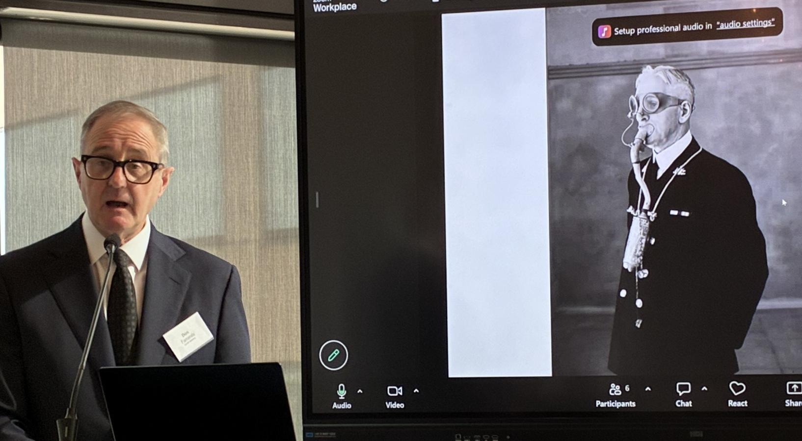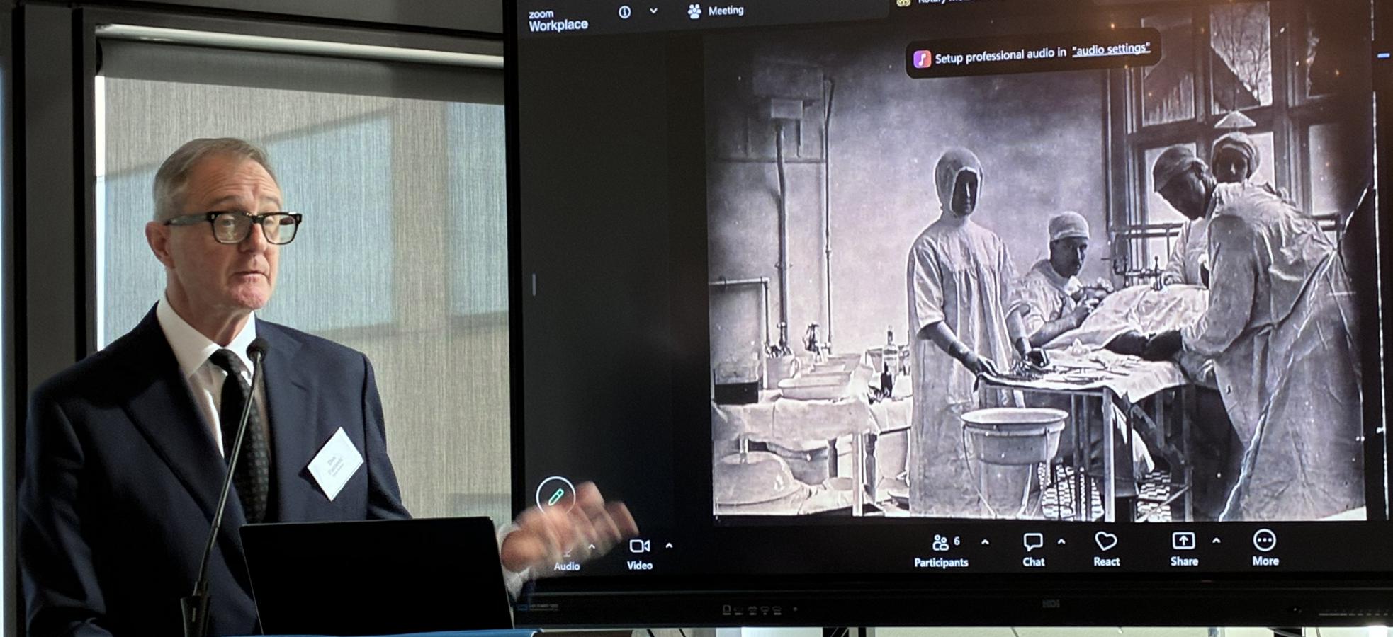 Philip then invited the Chair for the Day, Stephen Lake, to introduce Don Farrands KC who provided a poignant, intimate account of World War I through the experiences of his grandfather, Nelson Ferguson. Unlike traditional military histories focused on strategy, this story centres on the gruelling reality of a stretcher bearer — a role defined by courage without a weapon.
